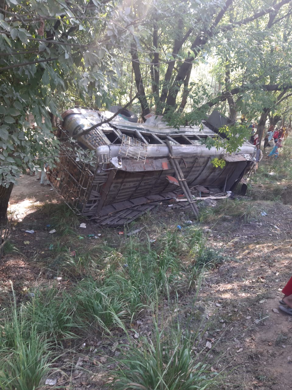 Official sources told GNS that the bus (JK09-0557) met with the accident at Khanpora Magam when the driver of the bus, coming from Magam to Handwara, apparently lost control over the vehicle while negotiating a curve.