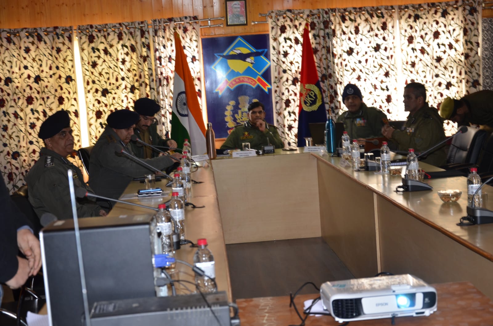The meeting was attended by DIG SKR Rayees Mohammed Bhat-IPS, DIG CKR Sujit Kumar-IPS, DIG CRPF D.P Upadhayay, SSP Awantipora Mohd Yousif-JKPS, SSP Anantnag Ashish Kumar Mishra-IPS and other senior officers of Police & CRPF.