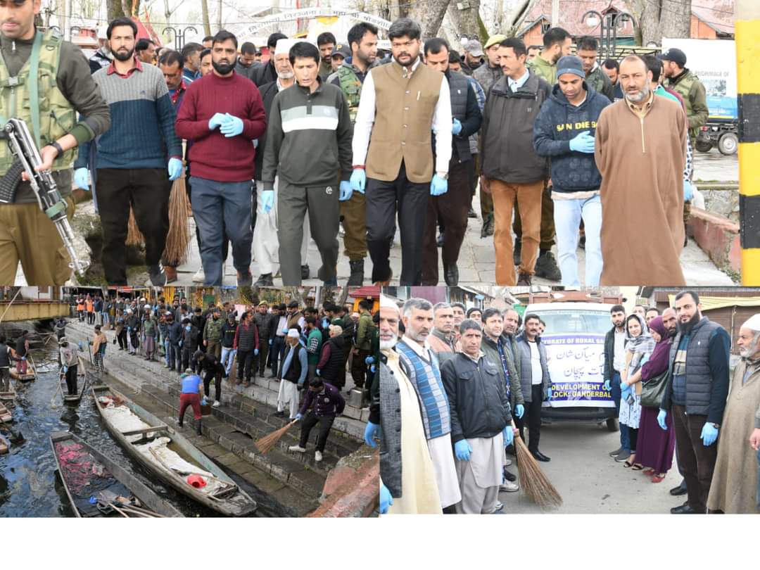 GANDERBAL, MARCH 20: Continuing with its endeavour to ensure all-round cleanliness in the district, the Deputy Commissioner (DC) Ganderbal, Shyambir today launched a day long sanitation drive at Kheer Bhawani Temple Tullamulla and its adjoining areas.