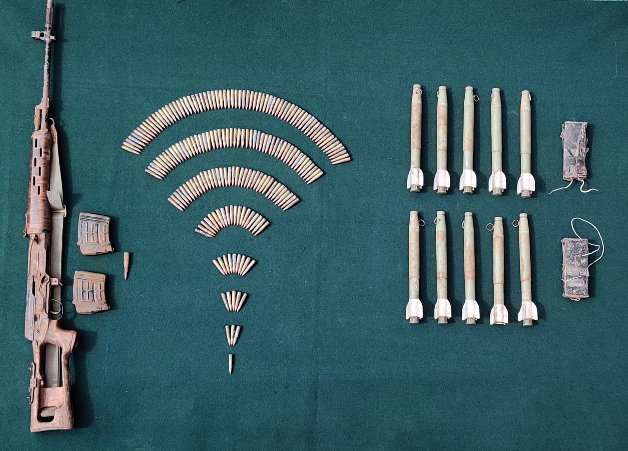 Defence Spokesman in Srinagar Colonel Rajesh Kalia told news agency—Kashmir News Observer (KNO) that a Dragon Sniper its magazine and 194 AK-47 rounds , 10 Rifle Grenades and two IED Circuits were recovered in Marpathri, upper reaches of Gulamarg in Baramulla district.