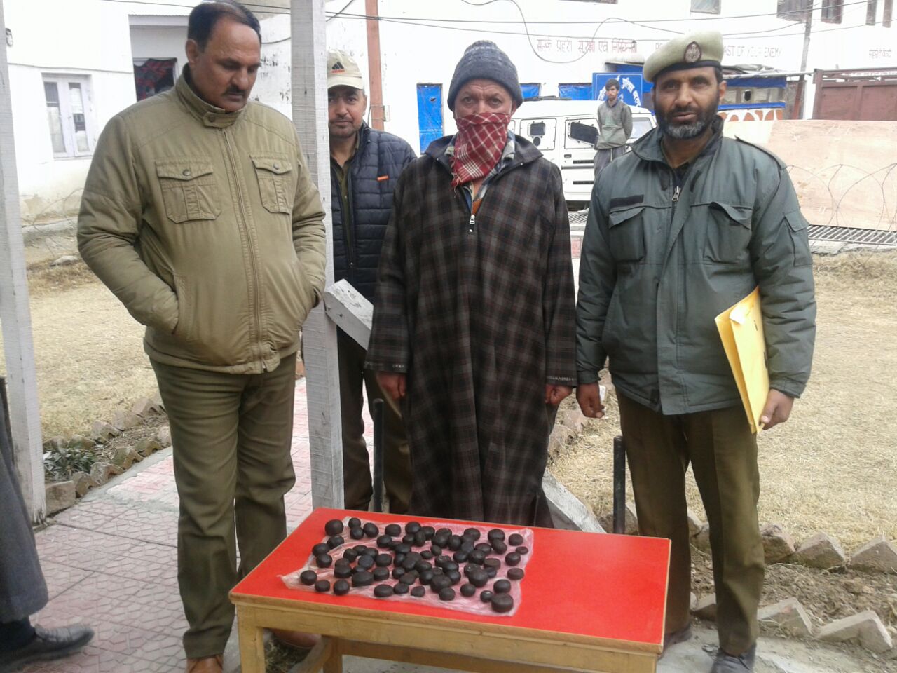 As per the reports, today on 29th January 2018 at about 02:20 pm, During Naka checking at Kachnambal crossing Kangan a Police party of Police Station Kangan intercepted a suspicious person namely Abdur Rashid Lone son of Ghulam Mohammad Lone of Chattergul and Police party recovered (69) pellets of charas (CANNABIS) measuring about 1.4 kg from his possession.