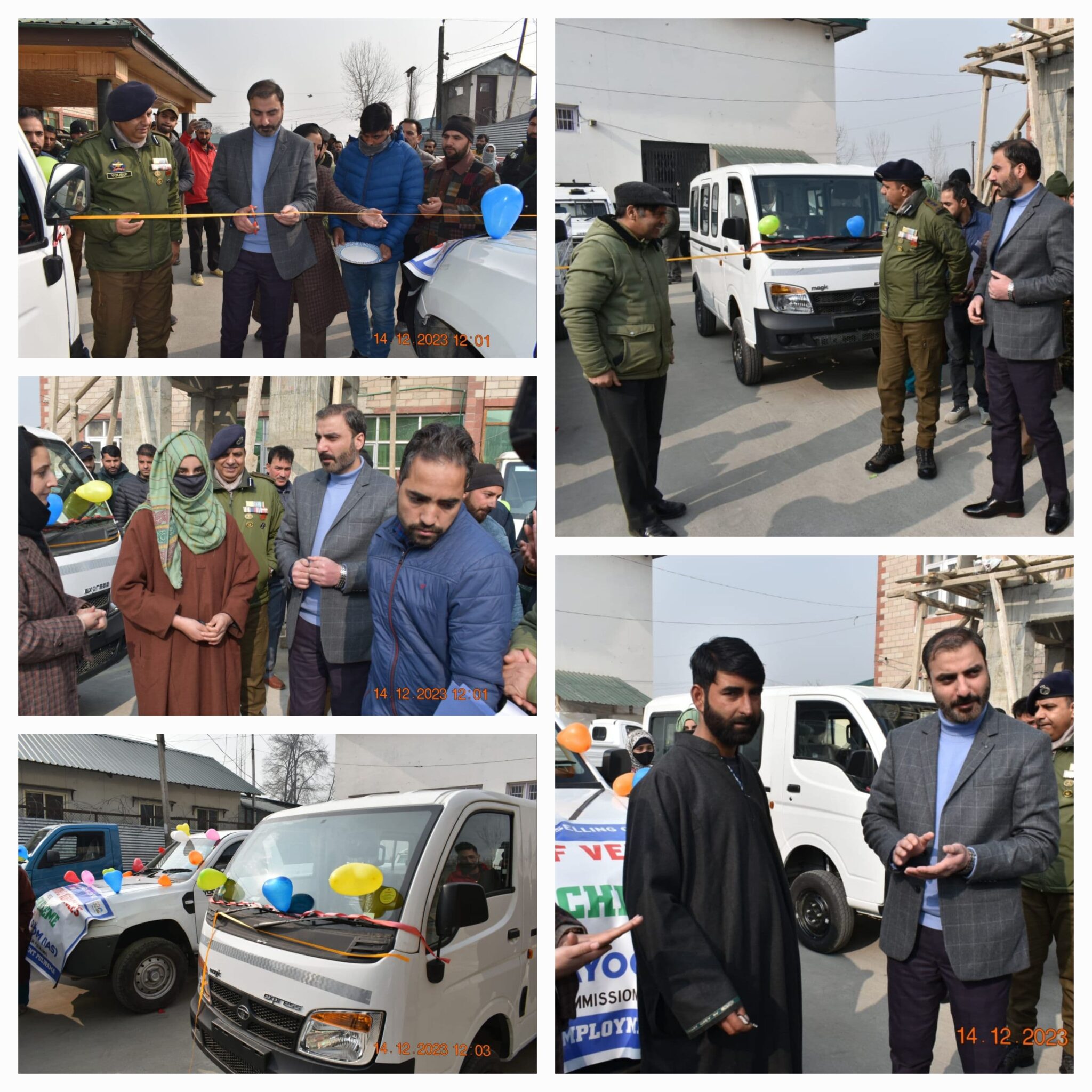 Pulwama,December 14: In a significant step towards fostering economic independence, the District Employment and Counseling Centre (DECC) District Pulwama distributed 13 small commercial vehicles and 01 Passenger Vehicle under the Mumkin scheme at the District Administrative Complex Pulwama today.