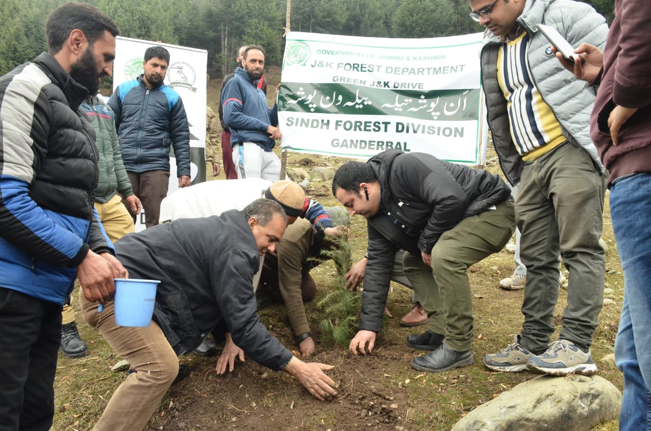 DFO Sindh forest Division Mr Owais Mir apprised that under J&K Forest Department's initiative "Green J&K Drive" around 50 lac saplings have to be planted in J&K in 2019-20 involving schools, colleges, govt institutions etc and this drive today is part of that initiative. He informed that around 0.42 lac plants shall be planted in District Ganderbal in the month of March which will see involvement of Govt offices, educational institutes, Gram panchayats, NGOs, civil society members etc.KNZ
