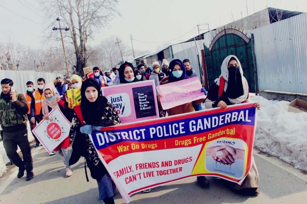 J & k Police has adopted multi-pronged strategies to fight war against narco terrorism, syndicates of drugs, drug peddlers and consumers. In this regard, Ganderbal Police today organised series of events for bringing awareness amongst younger generations and the community as a whole.