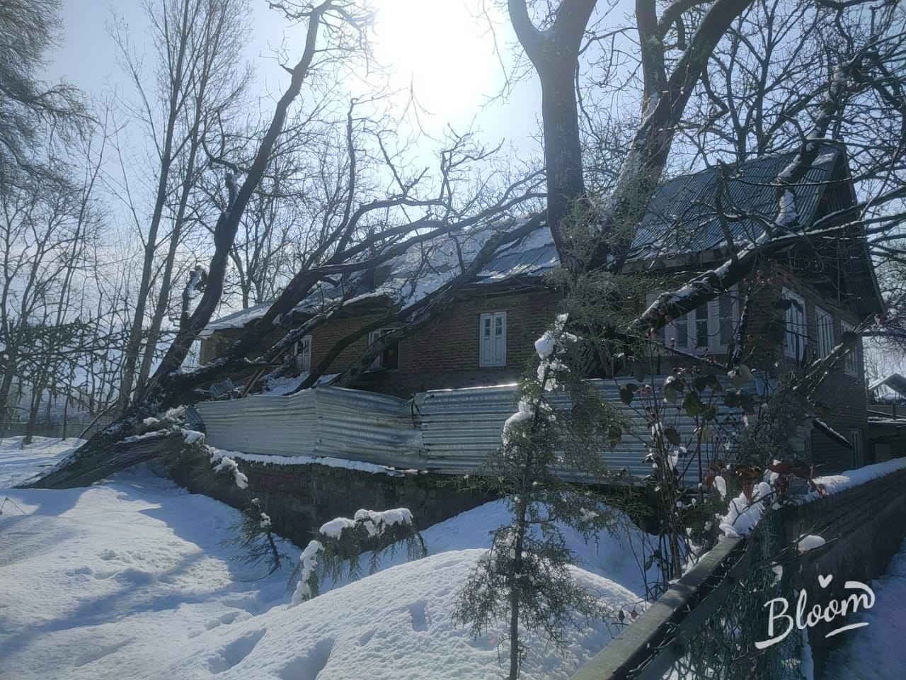 Ganderbal:A house was damaged in Arch village of Central Kashmir's Ganderbal district today after walnut tree fell down on house during night hours .