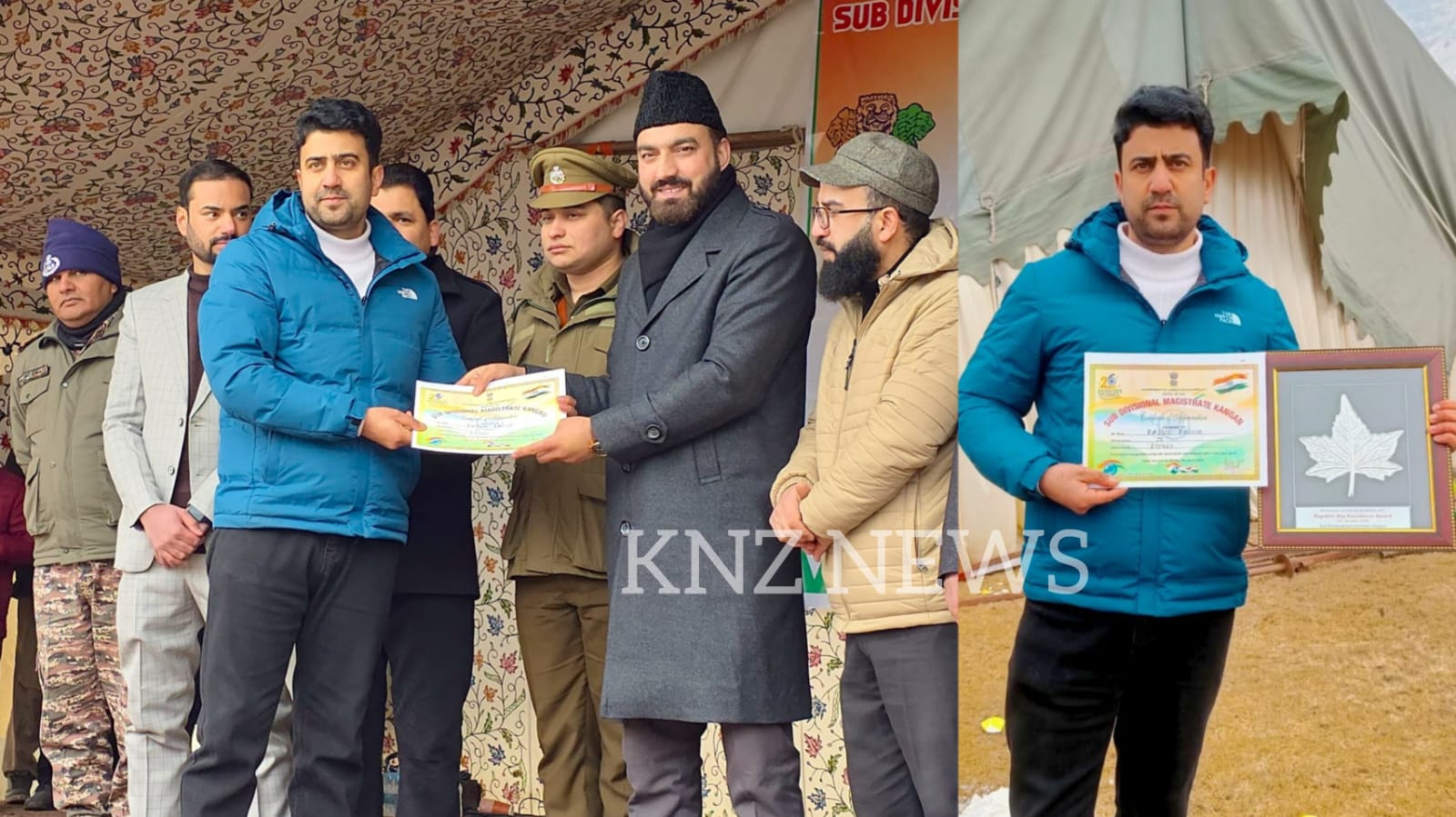Ganderbal, 27 Jan (KNZ):Rashid Bashir, Junior Engineer with the Pradhan Mantri Gram Sadak Yojana (PMGSY), Ganderbal, was honoured on the occasion of the 77th Republic Day celebrations held at Kangan for his commendable public service.