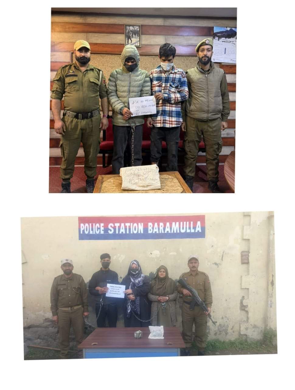 Baramulla, Nov 13 Continuing its efforts to eradicate the menace of drugs from the society, Police have arrested four drug peddlers in Baramulla and recovered contraband substance from their possession.
