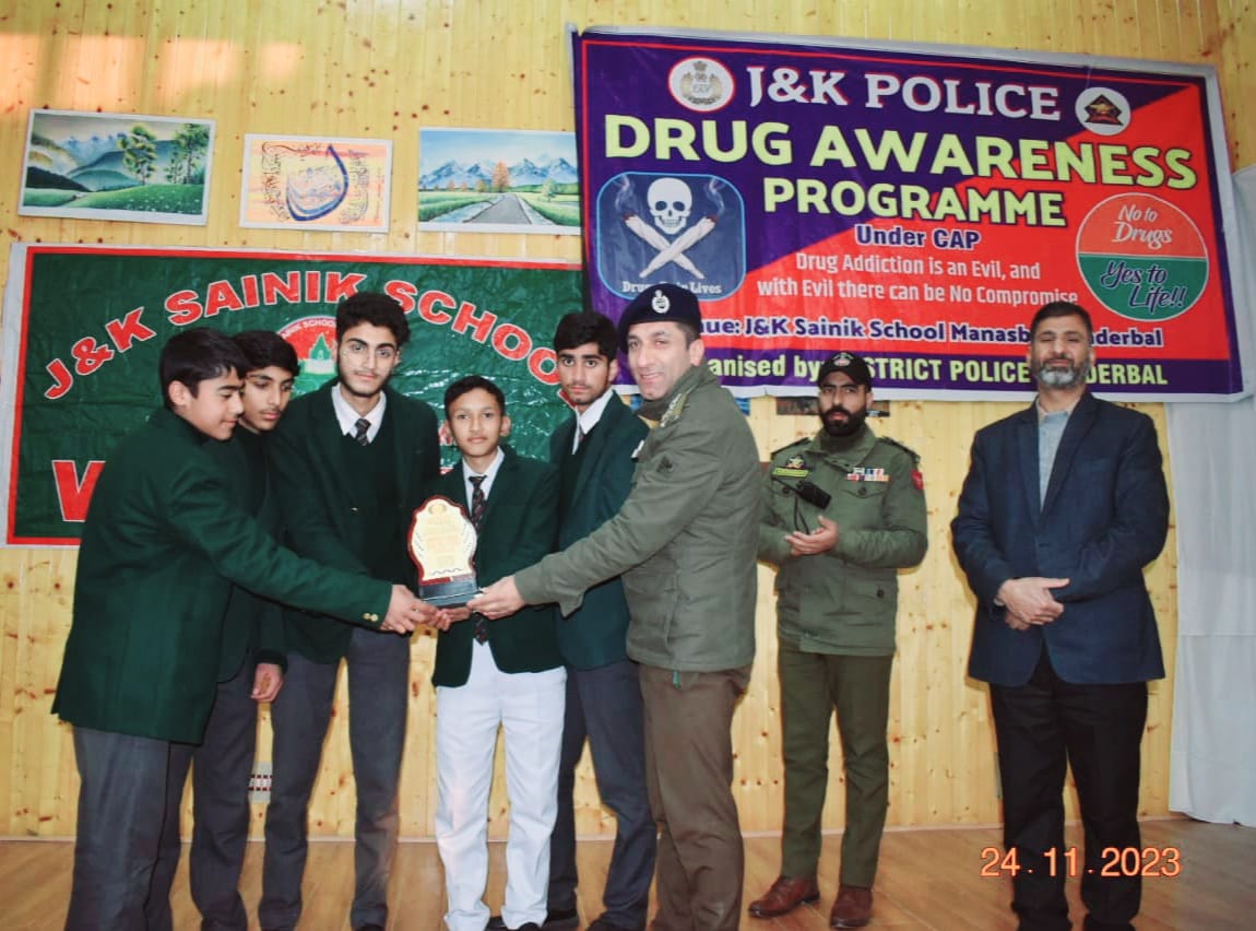 Ganderbal November 24: Police in Ganderbal under the Civic Action Program organised drug awareness Seminar/Programme at Sainik School Manasbal. The seminar/programme was organised on the directions of SSP Ganderbal Shri Nikhil Borkar-IPS.