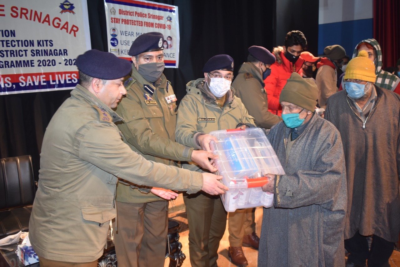 January 27: Continuing its efforts to reach out to the poor and needy people, Police in Srinagar under the aegis of Civic Action Programme distributed Covid-19 safety kits among the poor and needy families of South Zone district Srinagar at Tagore Hall Srinagar.