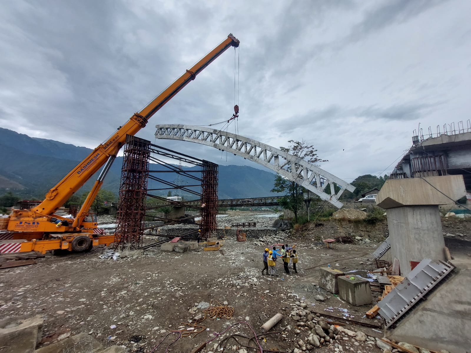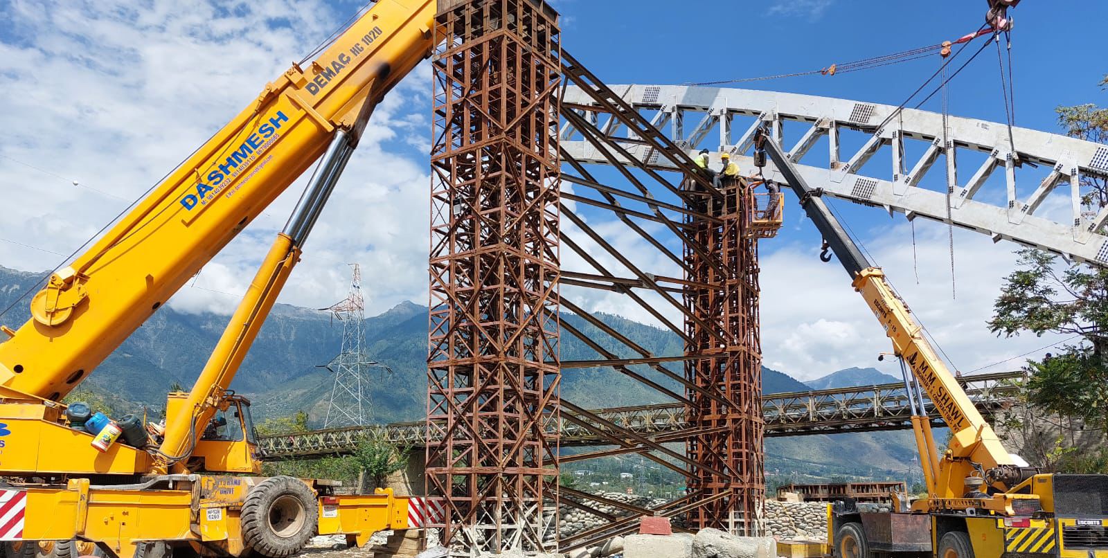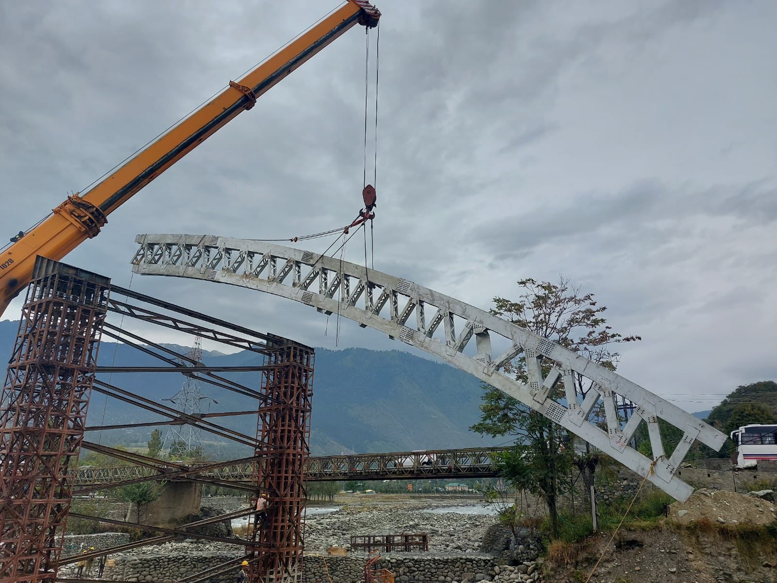 Chief Engineer R&B Rafiq Ahmad Rafiq along with Superintending Engineer Ganderbal Er Sajad Naqib,Executive Engineer Ganderbal Tatheer Manzoor, AEE Ganderbal and other officials today inspected work progress on bailey bridge constructed over Sindh at Wayil Ganderbal where they witnessed the installation arch truss girders.